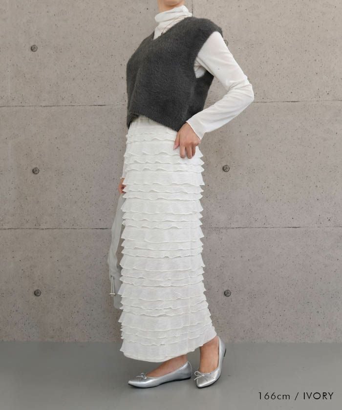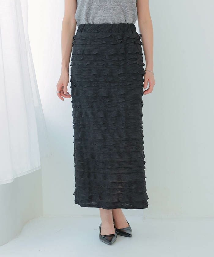 【最終値下げ価格】カットジョーゼットシャーリングナロースカート 春 夏 秋 M L | アクアガレージ aquagarage