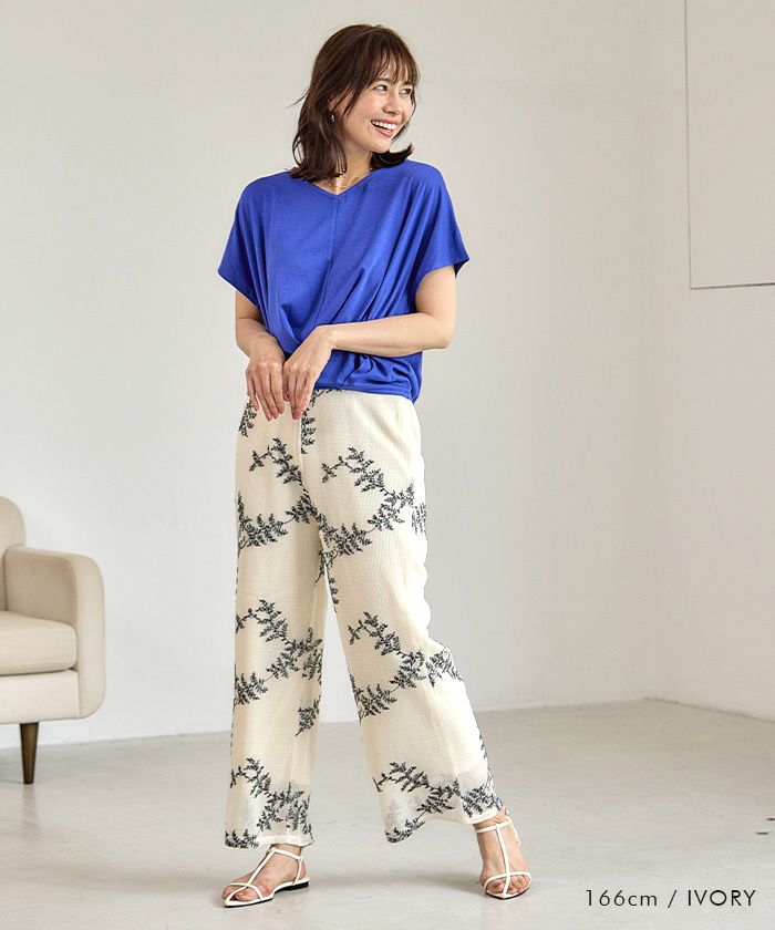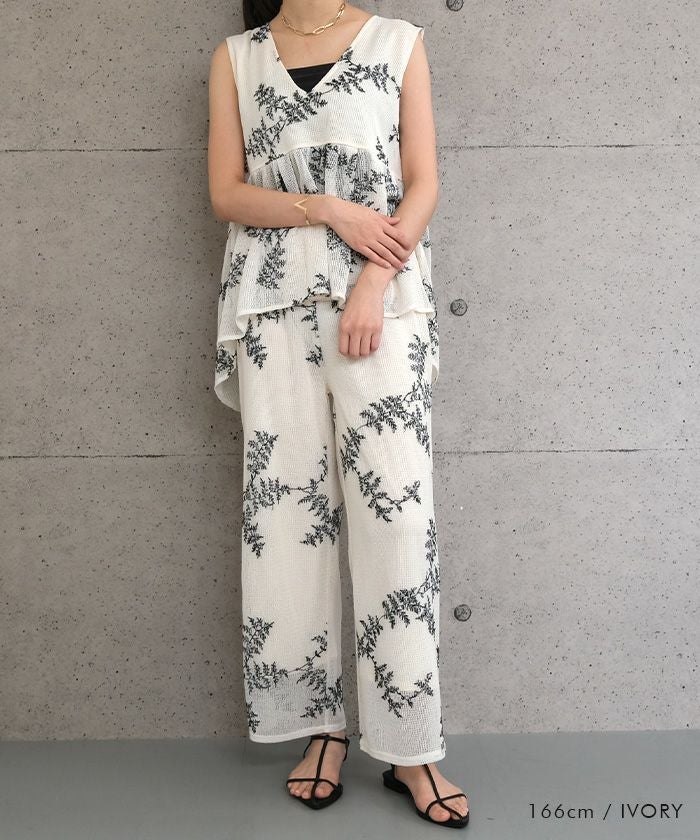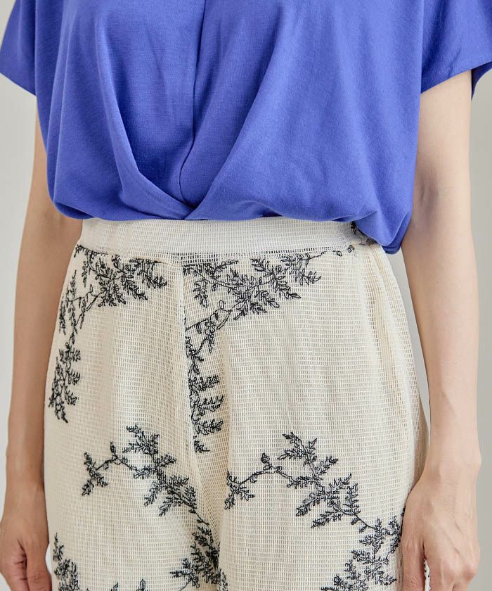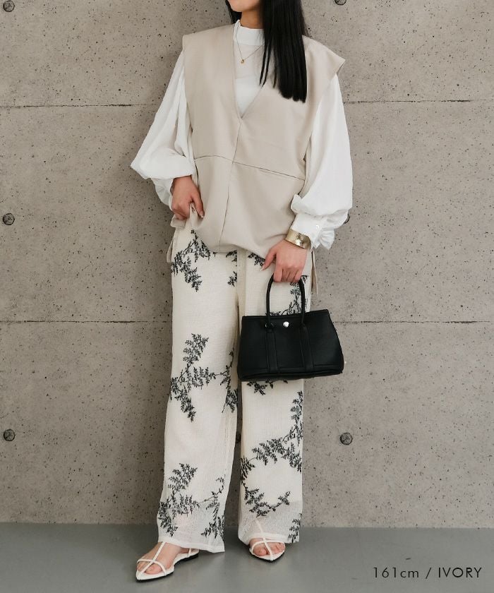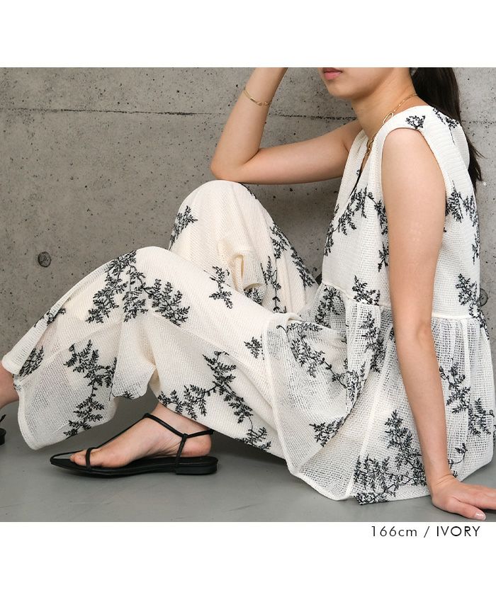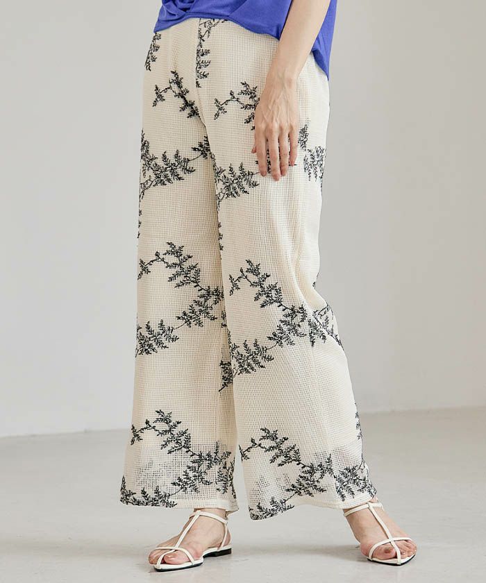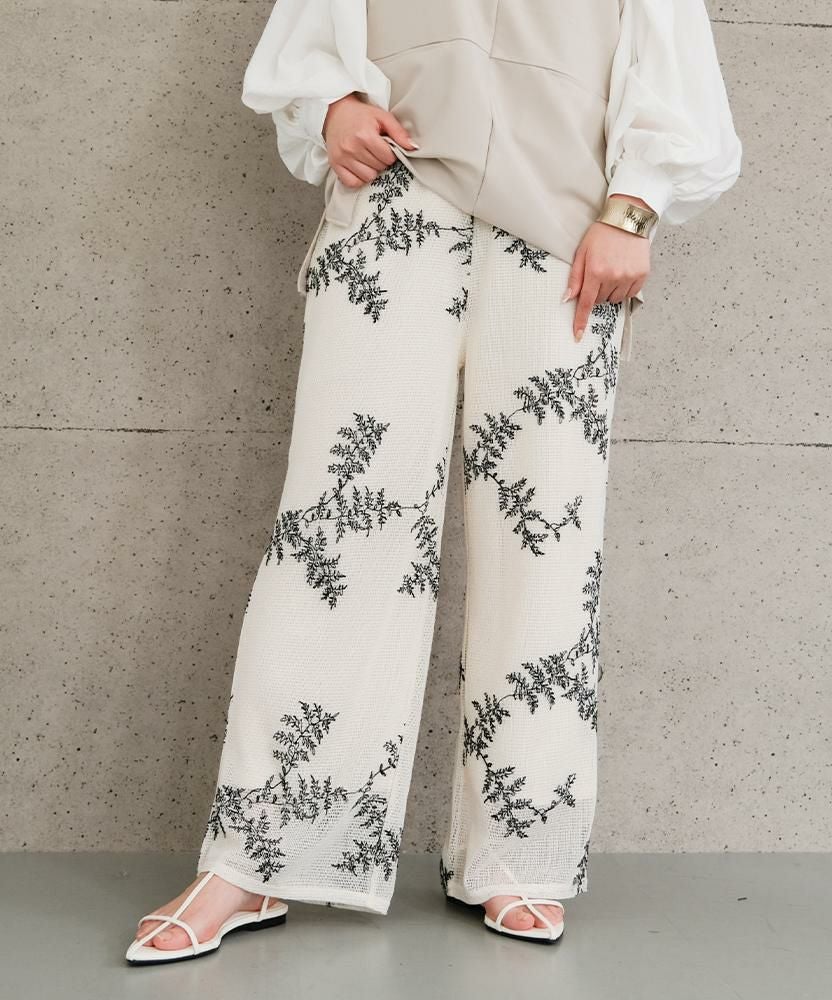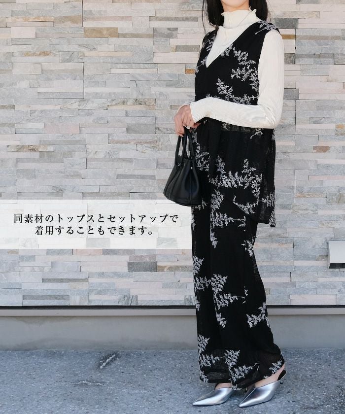 送料無料 【セットアップ可】花柄刺繍メッシュワイドパンツ 春 夏 秋 M ≪ゆうメール便配送30・代引不可≫|アクアガレージ aquagarage