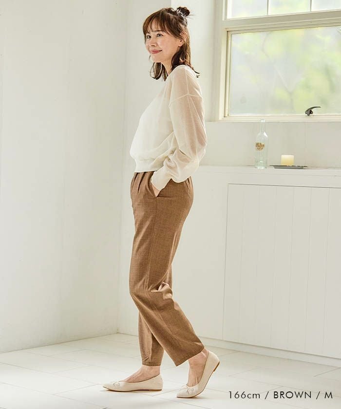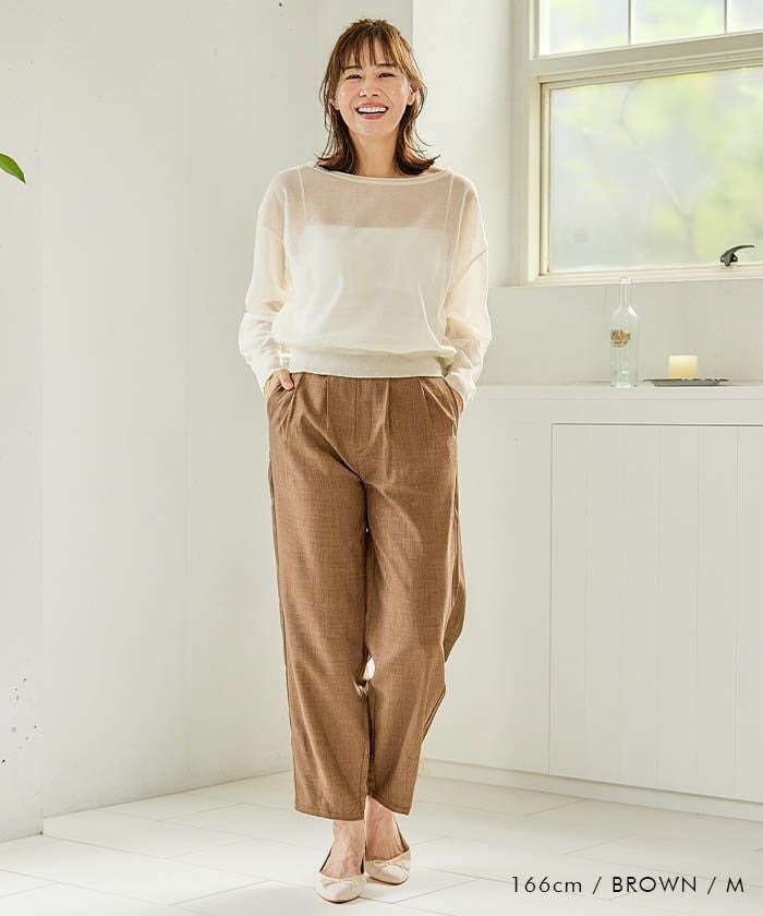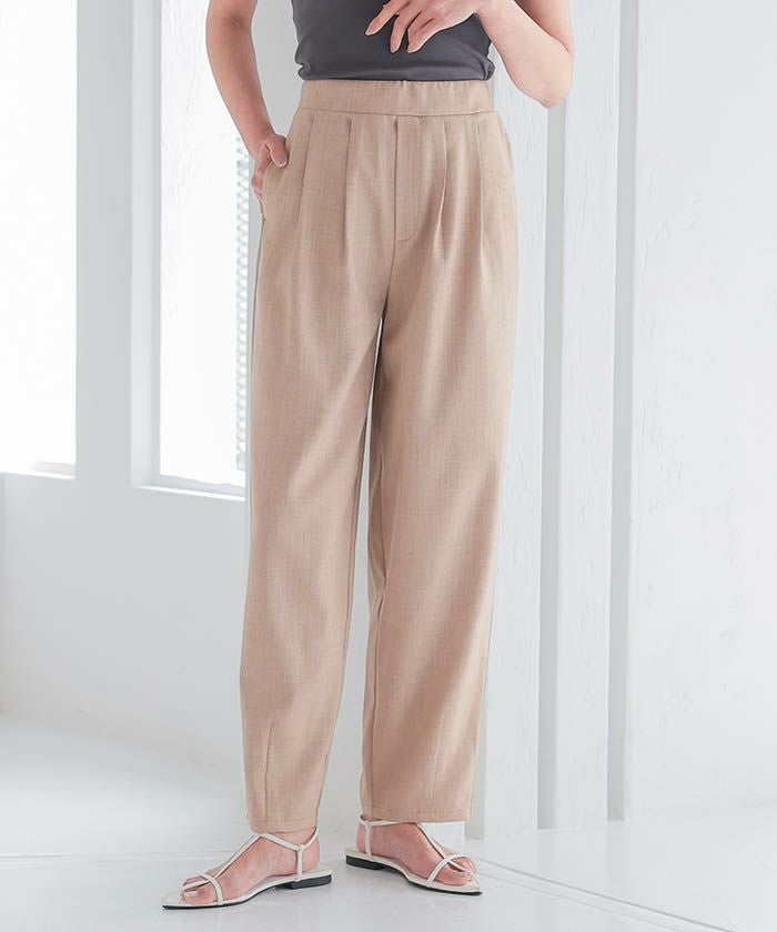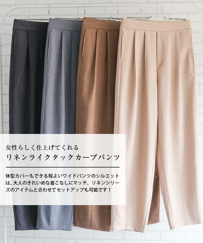 送料無料 リネンライクタックカーブパンツ レディース 春 秋 M ≪ゆうメール便配送20・代引不可≫|アクアガレージ aquagarage