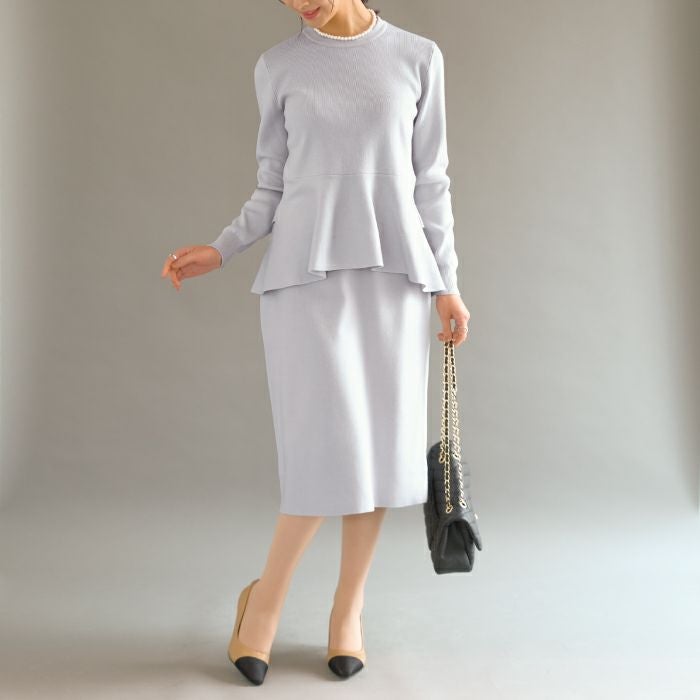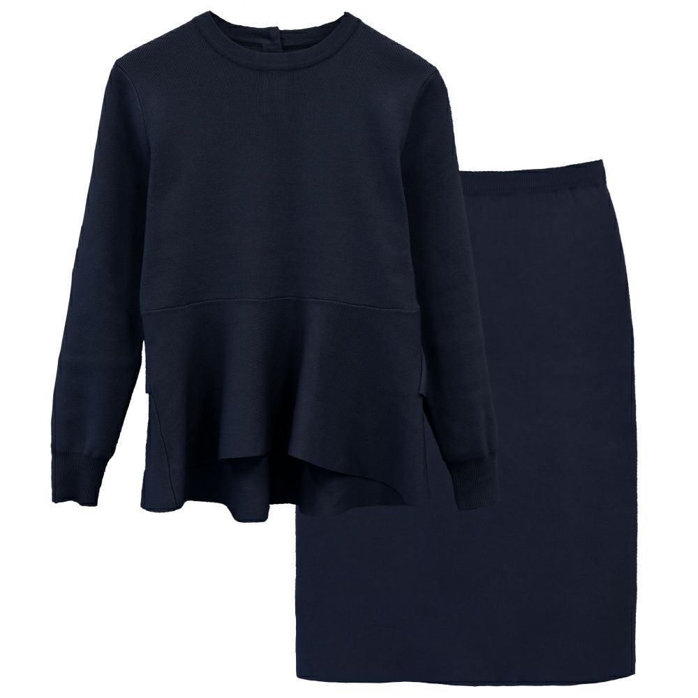 送料無料 ペプラムニットセットアップ レディース 春 秋 長袖 M L | アクアガレージ aquagarage