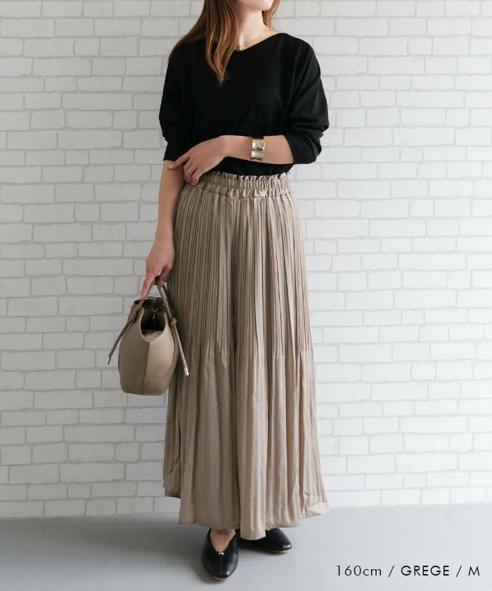 • 動く度にふわっと揺れるフェミニンな1枚♪サテン生地プリーツパンツ