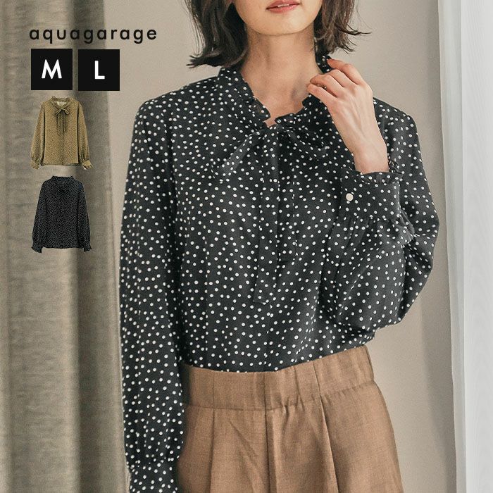 ドット柄フリルリボンブラウス 春 秋 レディース ≪ゆうメール便配送20・代引不可≫ | アクアガレージ aquagarage