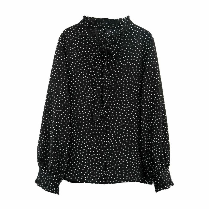 クラシカルな雰囲気を漂わせる、ドット柄フリルリボンブラウス。
