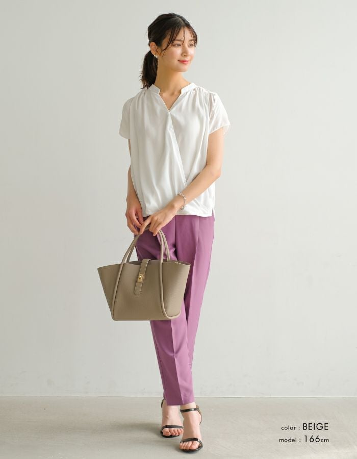 • 扇のようなフォルムがエレガントな雰囲気のバッグ。