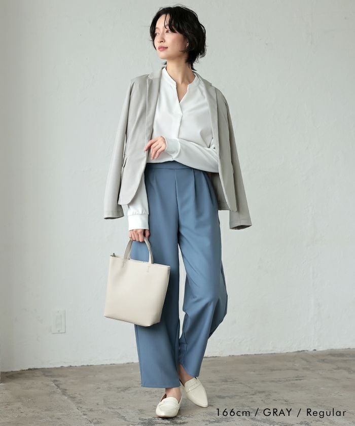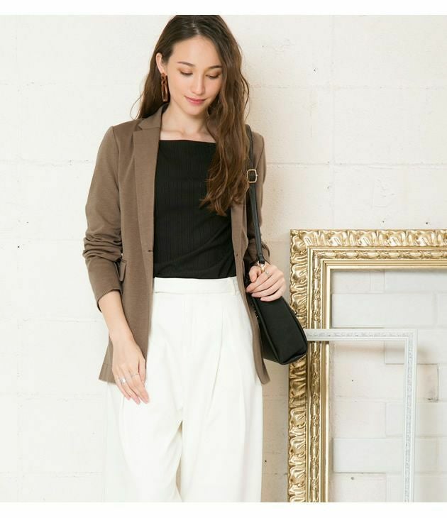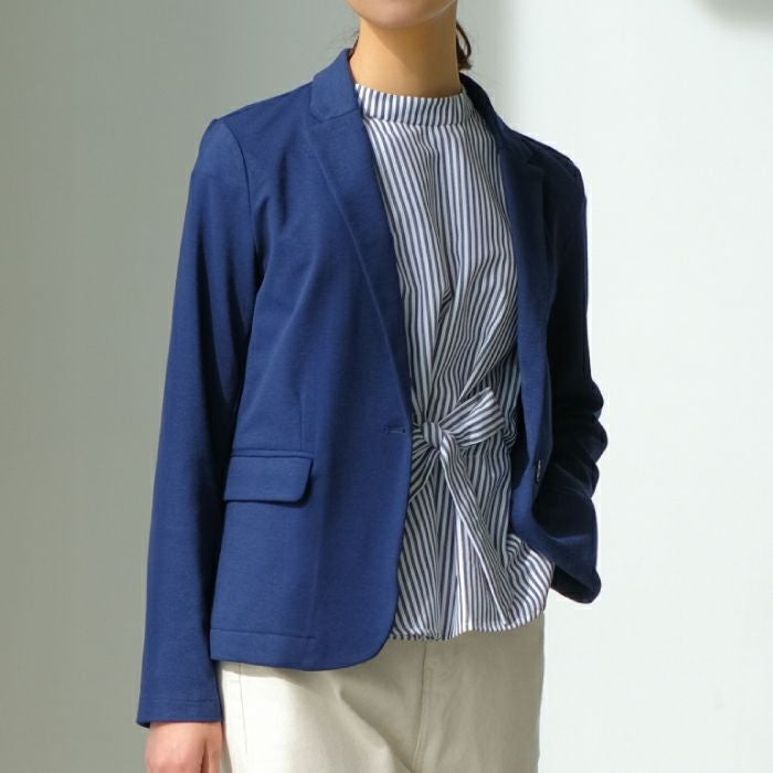 窮屈さの無いストレッチ素材でサッと羽織れる気軽さが魅力。