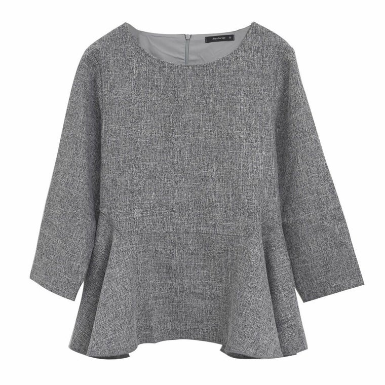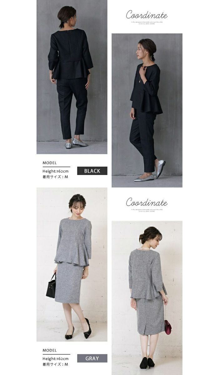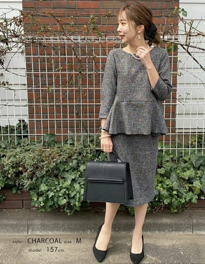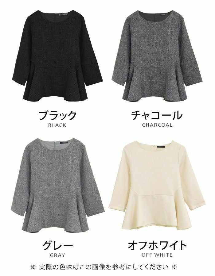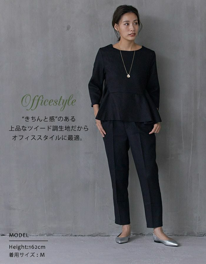 • オフィススタイルにも使えるきれいめツイードペプラムトップス。