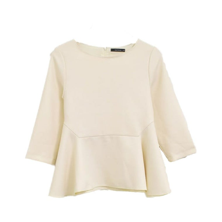 150cm、45kg、Sサイズ着用。 レビューを読んで、同じくらいの体型の方のを参考にして購入しました。 実物を見た瞬間、感じた感想が「大きそう」で、実際に試着してみて「ヤッパリ大き過ぎる」でした。 サイズが大き過ぎるのもあり見た目もあんまりでした。 Sサイズより小さいサイズもなく変更もできないので、残念ながら返品に至りました。 ペプラムは人気なので、PSサイズも展開して欲しいです。