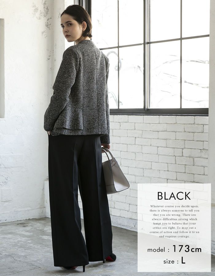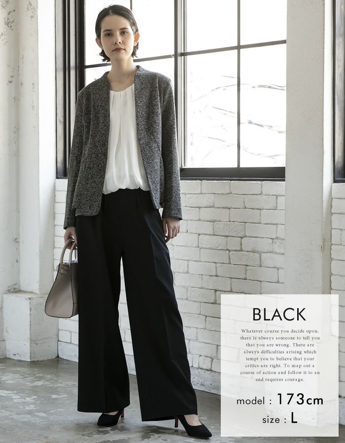 • 綺麗なワイドシルエットが魅力的なセンタープレスワイドパンツ。