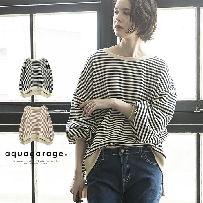 ボーダープルオーバー レディース M L 秋 冬 長袖 | アクアガレージ aquagarage