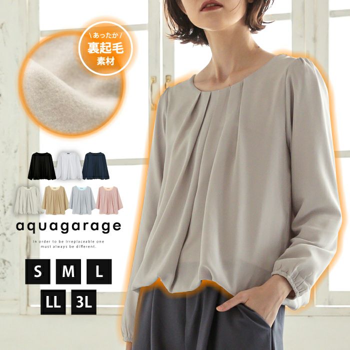 送料無料 フロントタック裏起毛シフォンブラウス レディース 秋 冬 S M L LL 3L 長袖 ≪ゆうメール便配送30・代引不可≫ | アクアガレージ aquagarage