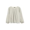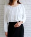 1枚できちんと見えるフロントのタックがテレワーク映えもして上品な着こなしに。