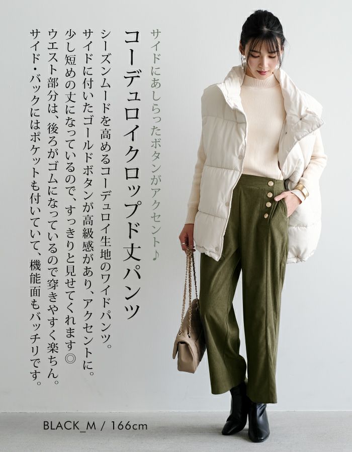 • サイドにあしらったボタンがアクセント♪コーデュロイクロップド丈パンツ。