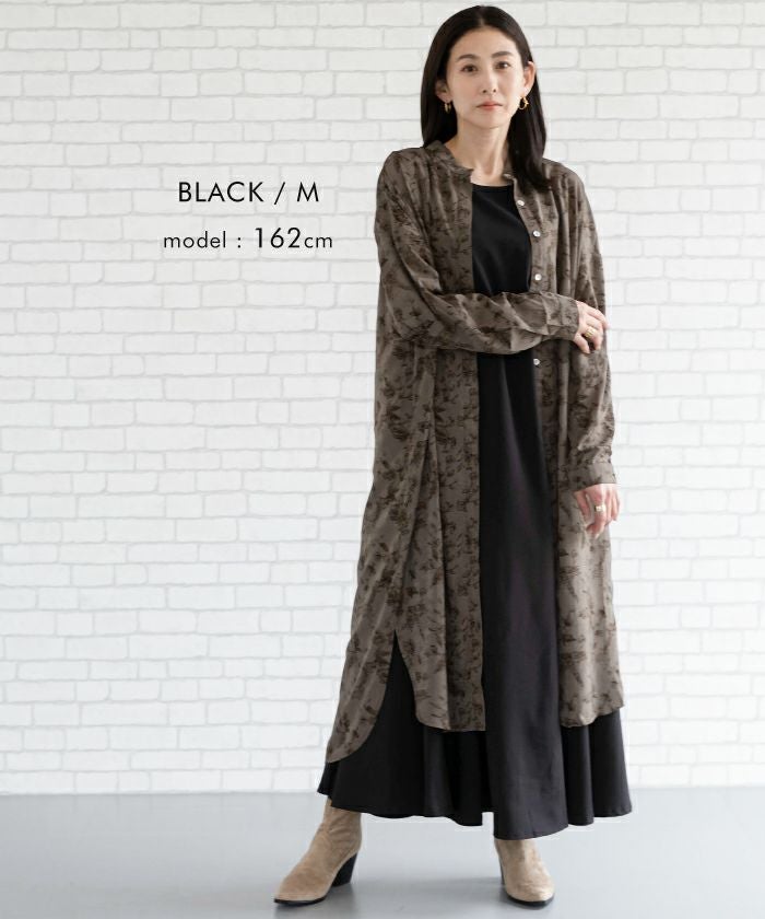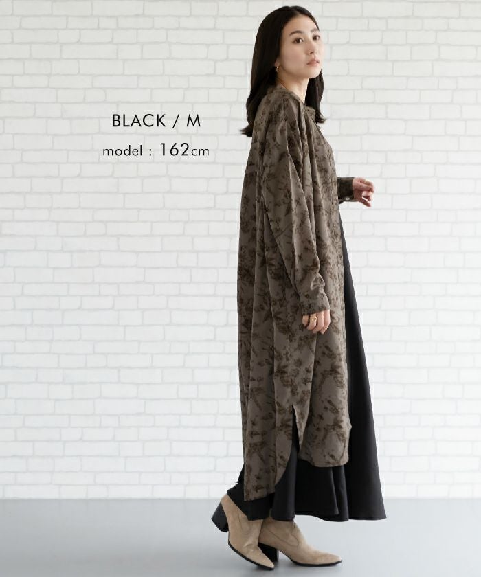 上半身は適度にフィット、腰から下にはぜいたくな切り替えを入れて思いっきりボリューミーなシルエットに。