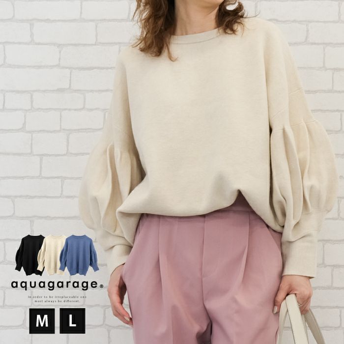 送料無料 袖バルーンニットトップス レディース 春 秋 冬 長袖 M L | アクアガレージ aquagarage