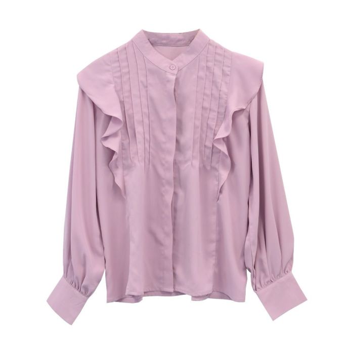• 女性らしい華やかな雰囲気を演出!タックフリルバンドカラーブラウス