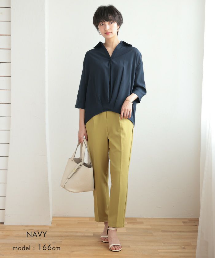 裾タック入りデザインで、フロントINしているようなこなれスタイルに。