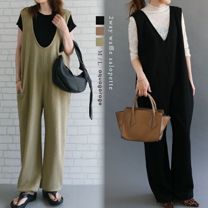 • V×Uネックの前後2wayサロペット