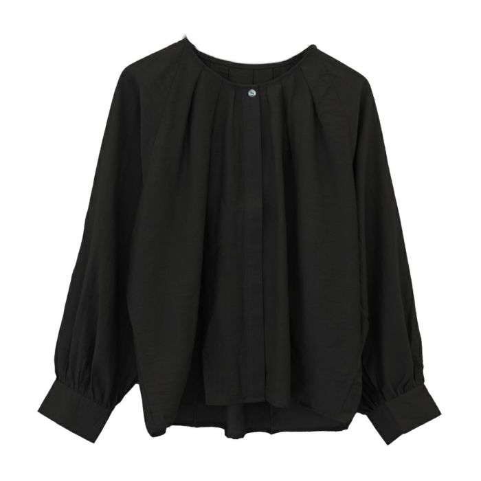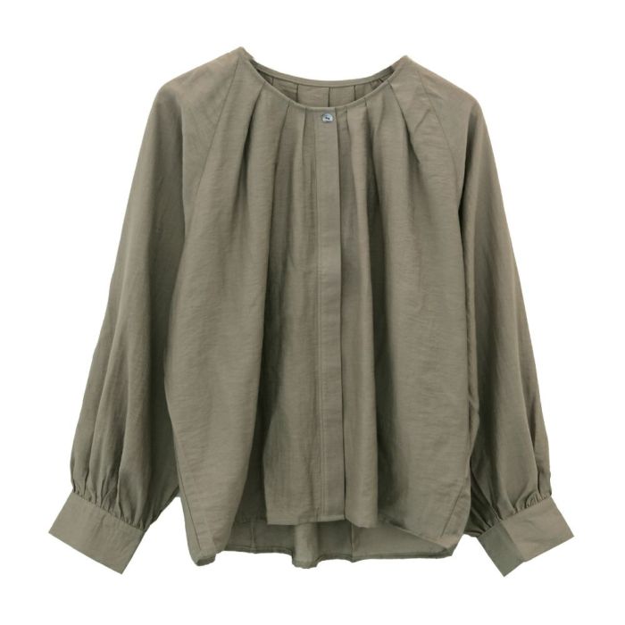 • 高級感のあるレーヨンブラウス。タックとドレープの贅沢な生地使いで360°ふんわり立体的なシルエット。肩の位置を拾わないラグランスリーブは、肩幅を気にしてボリュームブラウスを諦めている方にもおすすめできる一枚です。