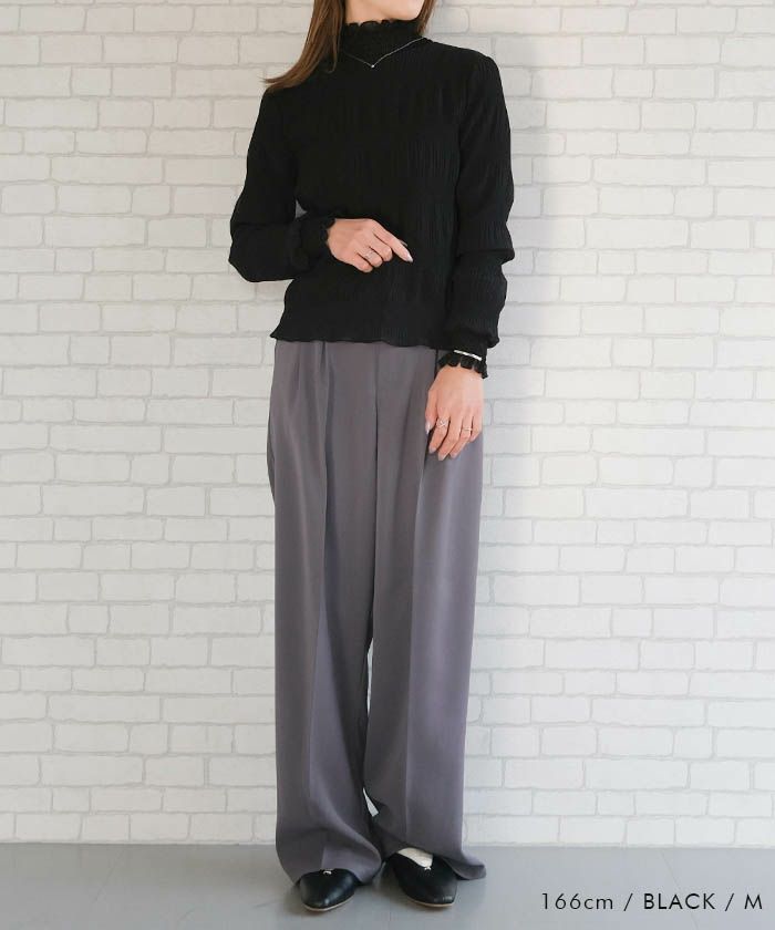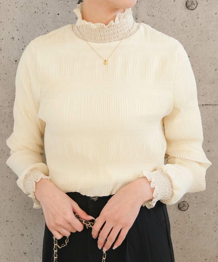 • トップスにもインナーでも使える万能裏起毛ハイネックフリルブラウス