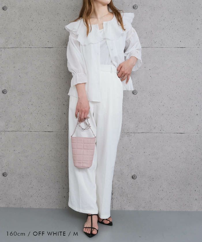 ふんわりとしたラッフルフリル襟が目を引く、2way仕様のブラウス。