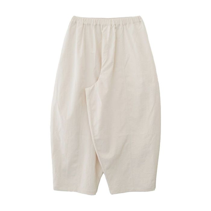 樽(バレル)のような曲線が印象的な、ヒップから裾にかけて丸みを出したシルエットのパンツ。