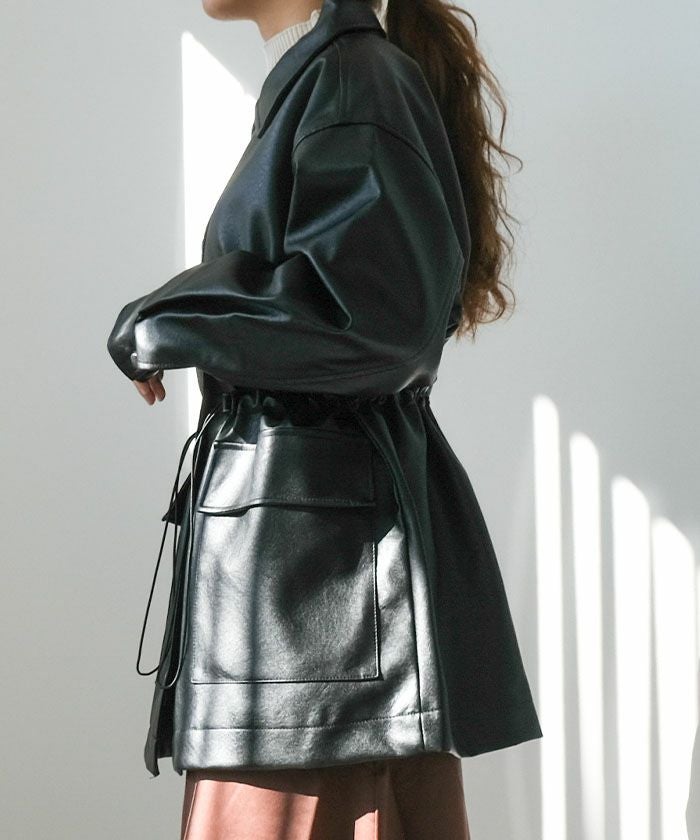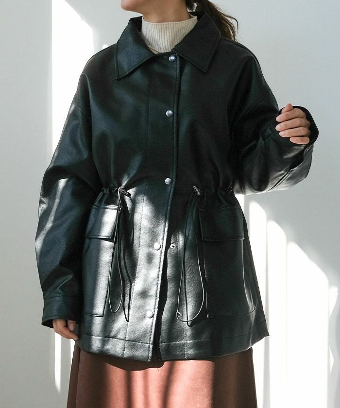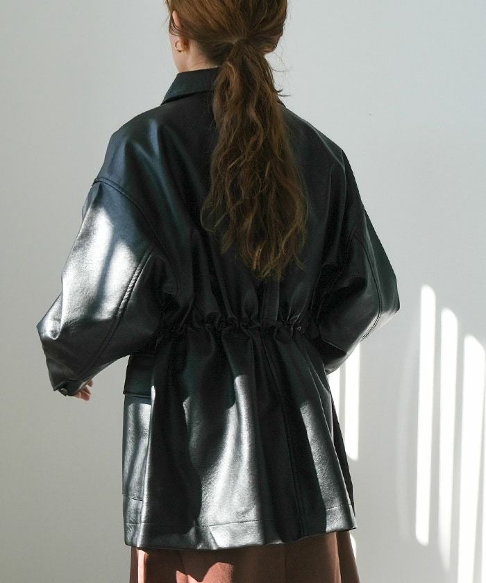 程よいツヤ感と柔らかさが魅力の、フェイクレザージャケット。ハードになりすぎない滑らかな質感と、丸みのあるフォルムで、女性らしく着こなせる一着です。