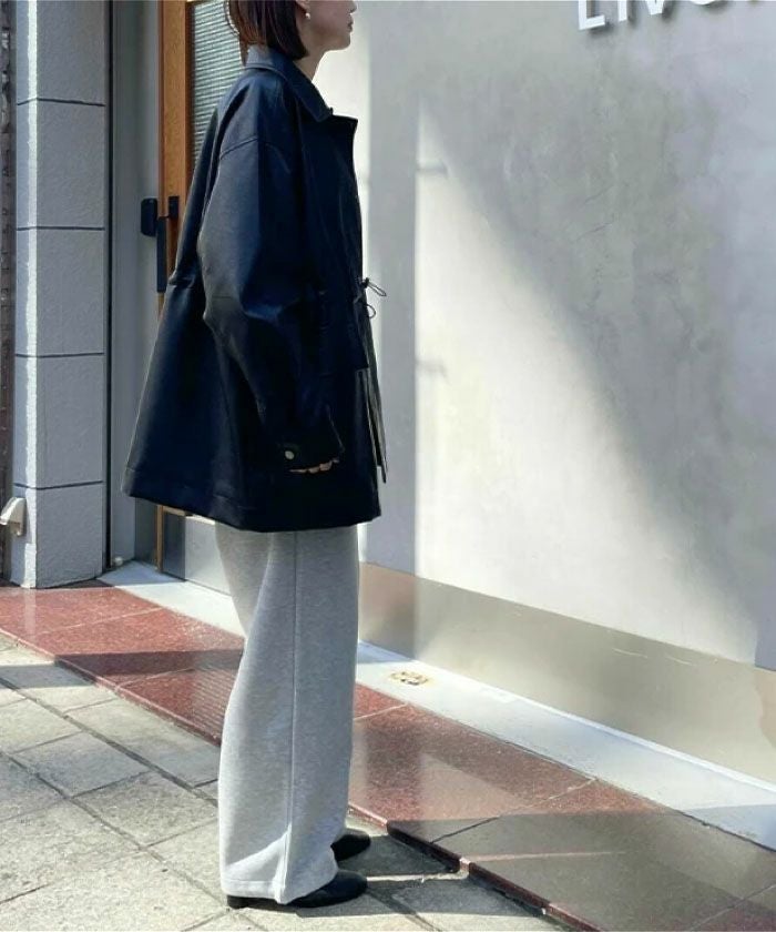 ウエスト部分にはドロストコードをあしらい、絞ることでメリハリのあるシルエットにも、ゆるっとラフなスタイルにもアレンジが可能。