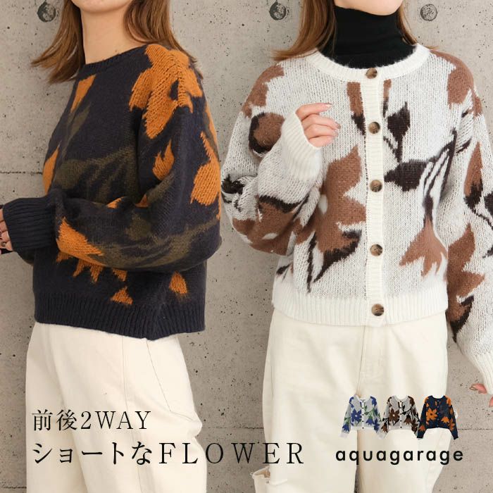 送料無料 前後2wayフラワー柄ショートカーディガン 秋 冬 | アクアガレージ aquagarage