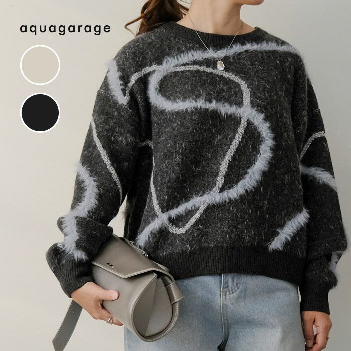 送料無料 フェザーラメラインニットトップス 秋 冬 M レディース | アクアガレージ aquagarage