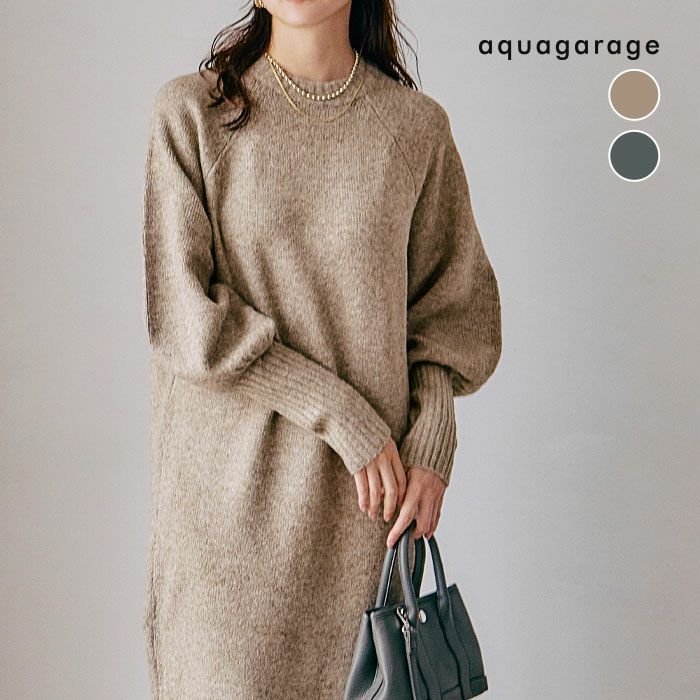 指穴付きボリュームスリーブニットワンピース レディース 秋 冬 | アクアガレージ aquagarage
