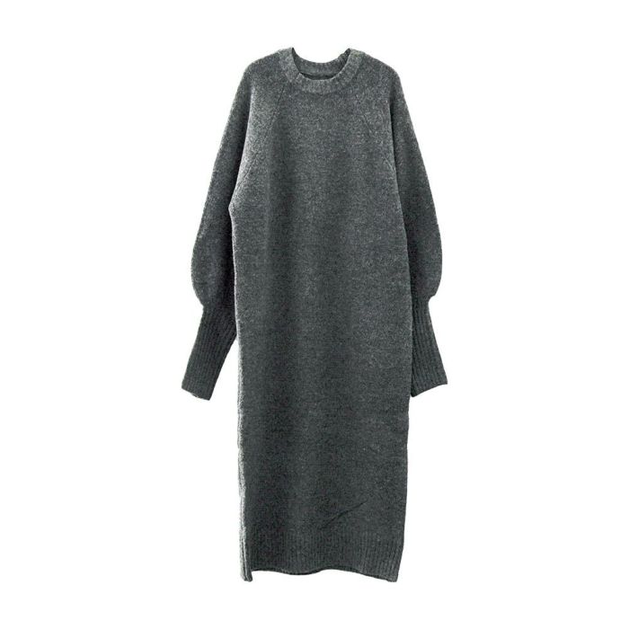 ふんわりとしたボリュームスリーブが特徴的で、腕まわりをさりげなくカバーしつつ、女性らしい印象をプラスするニットワンピースです。