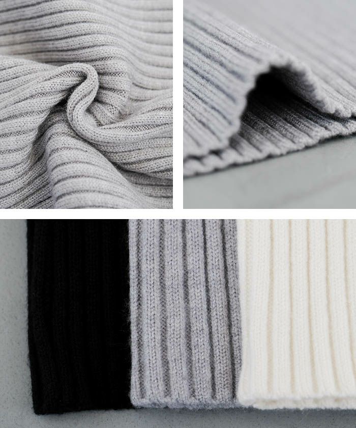 全体はすっきりとしたリブ編みで仕立てられ、女性らしいシルエットを自然に引き立ててくれます。