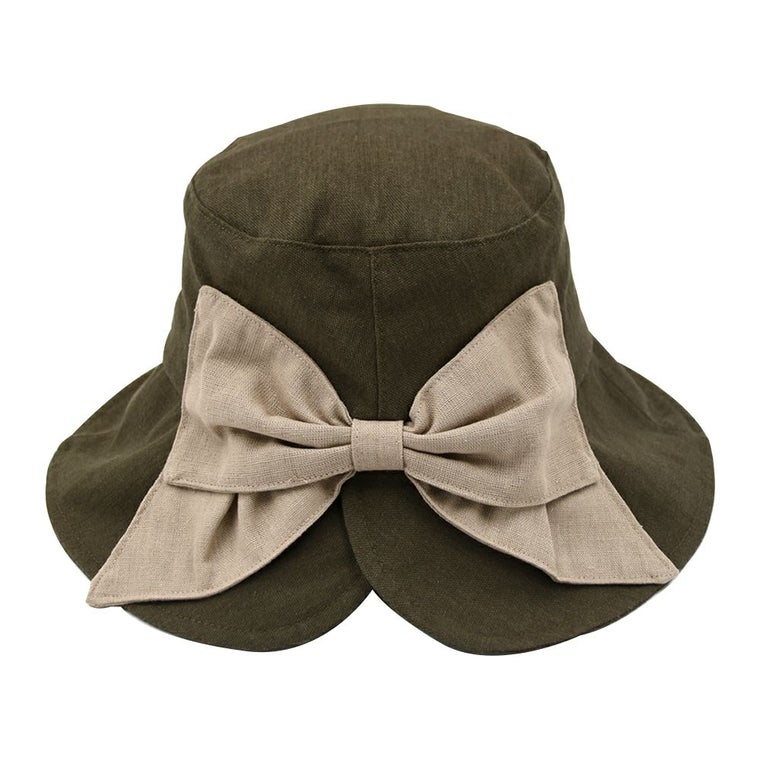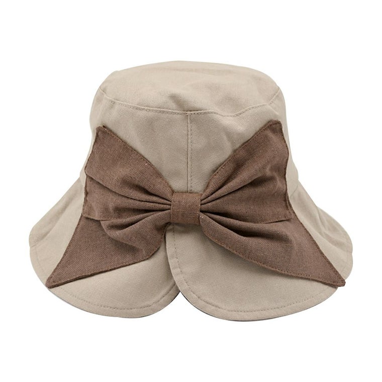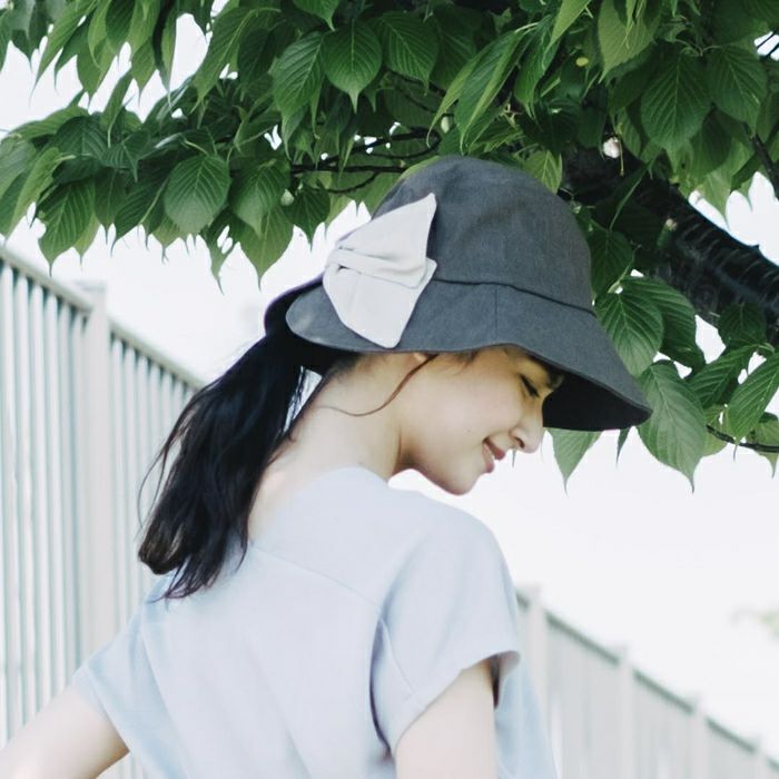 上品な後ろリボンは日差しが気になる季節の装いのアクセント使いにピッタリ。
