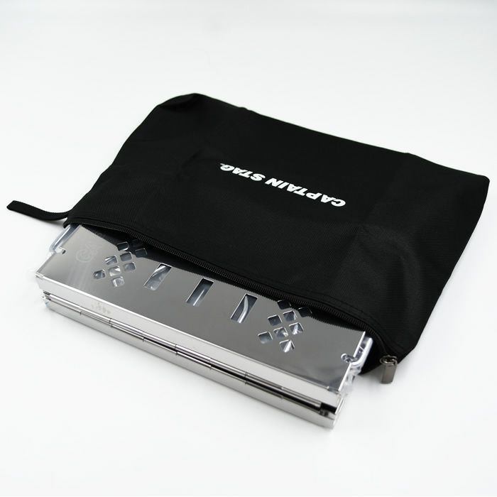 本体は錆びにくいステンレス製、収納・持ち運びに便利な収納バッグ付。