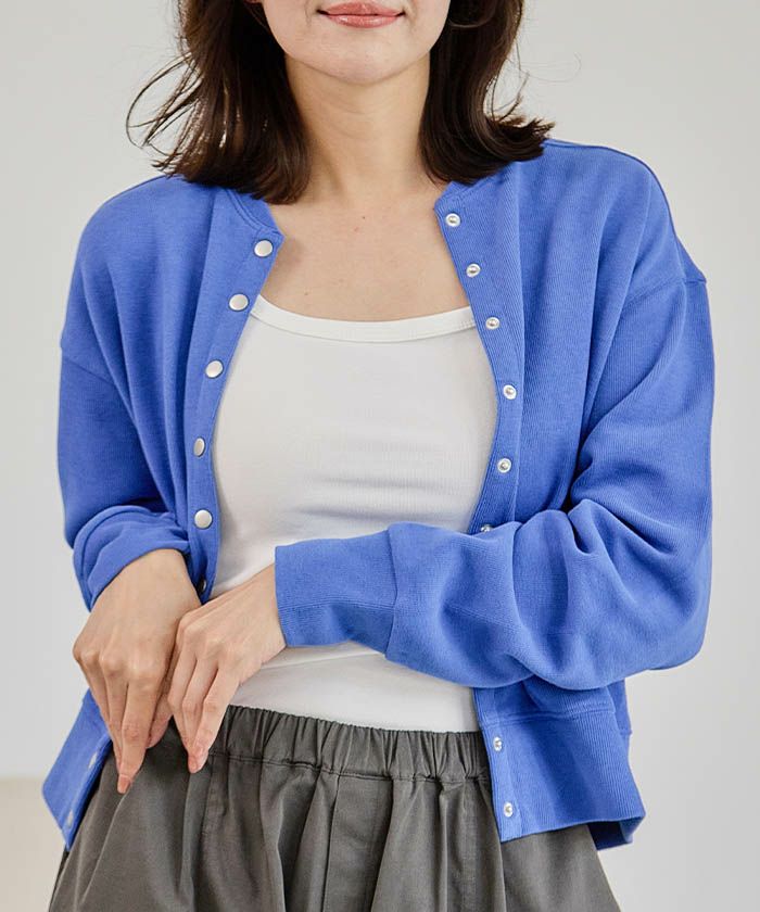 ほどよく体に沿うスリムシルエットで、重ね着してももたつきにくい設計。