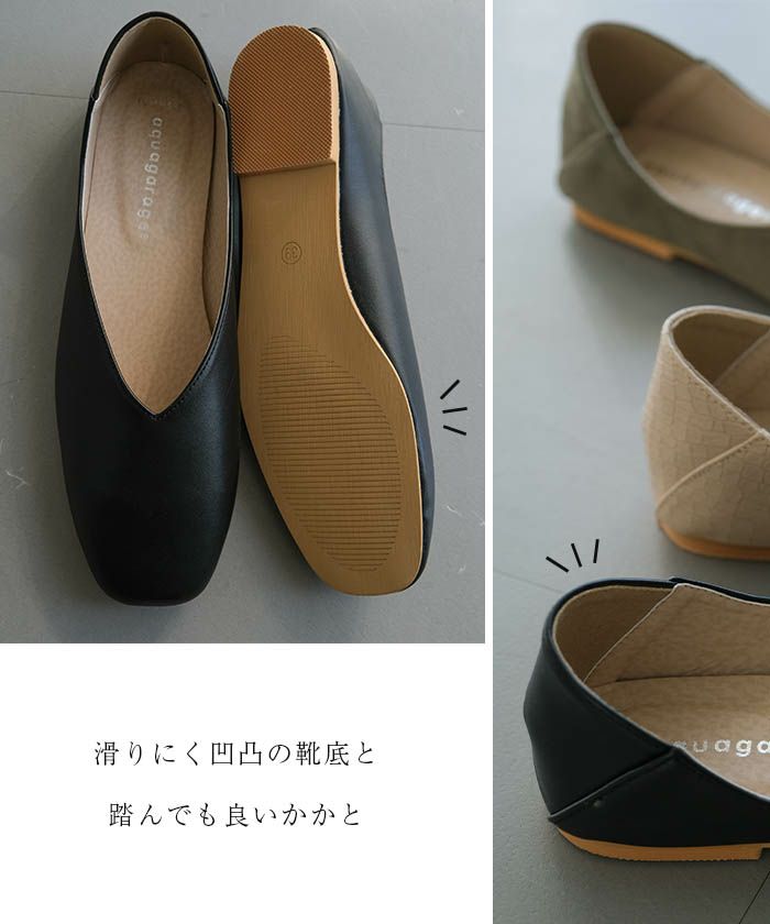 スクエアトゥフラットシューズ レディース らくちんパンプス ローヒール | アクアガレージ aquagarage