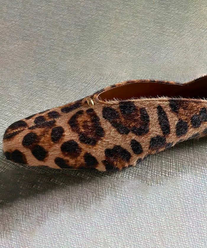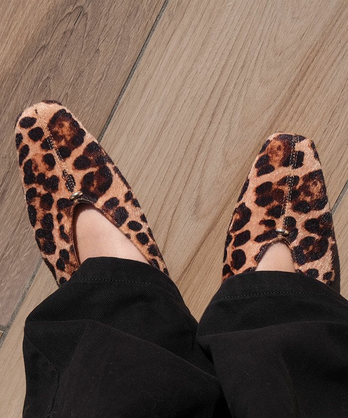 特徴的なカットラインとゴールドの金具に、ふかふかのクッションが入っていて足になじむソフトな履き心地。