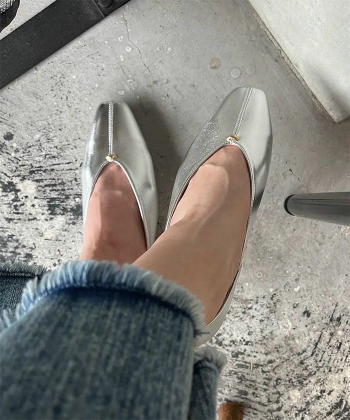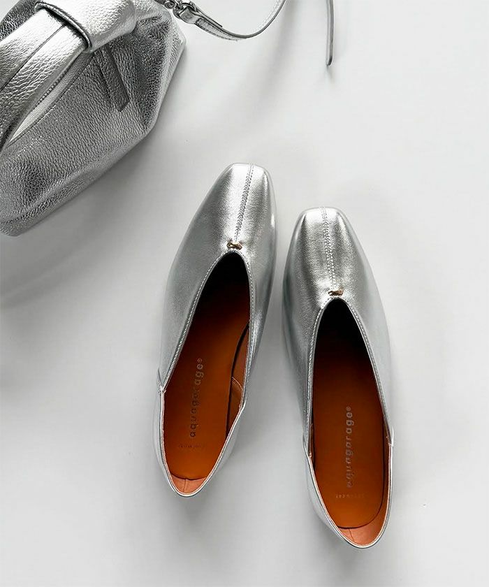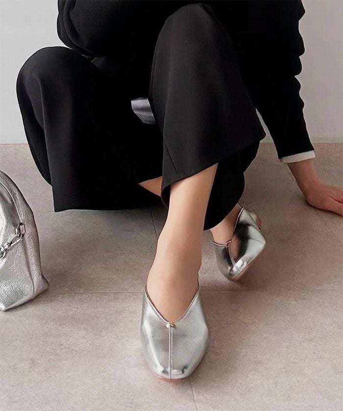 上品なスクエアトゥとローヒールが大人の足元にぴったりな1足。