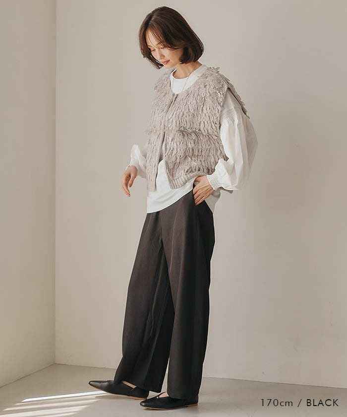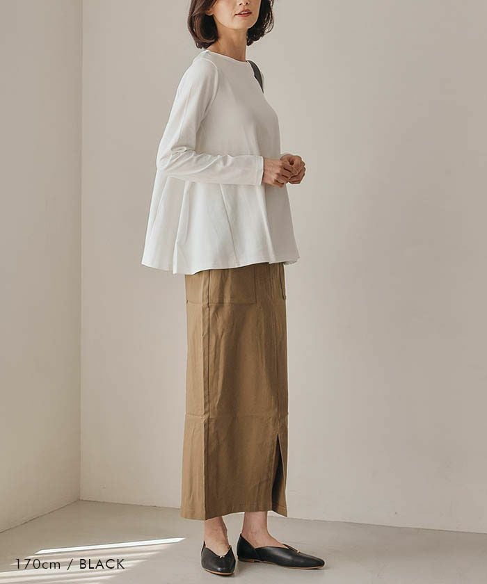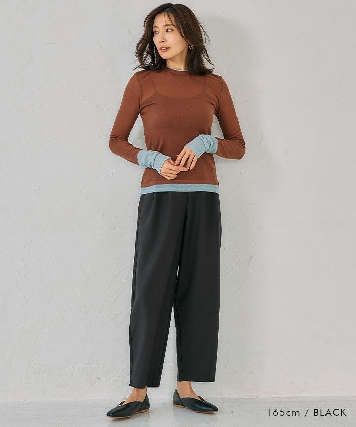 ワイドパンツやフレアスカートに合わせて、きれいめコーデに。