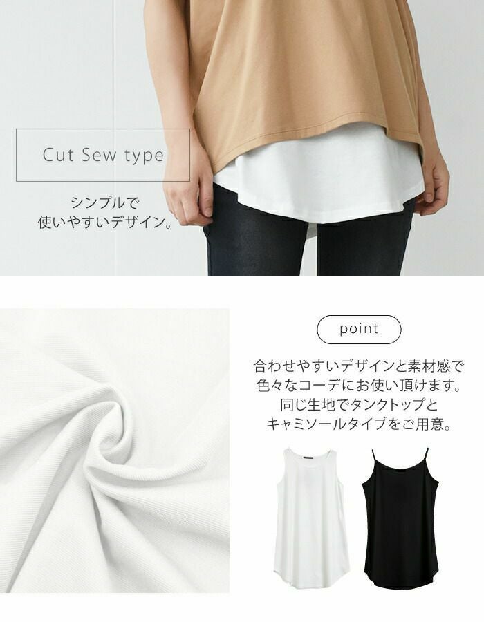 タンクトップ部分・キャミソール部分・カットソータイプは伸縮性のある柔らかいカットソー素材