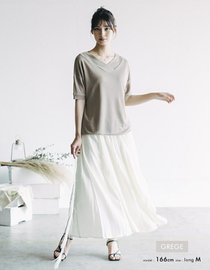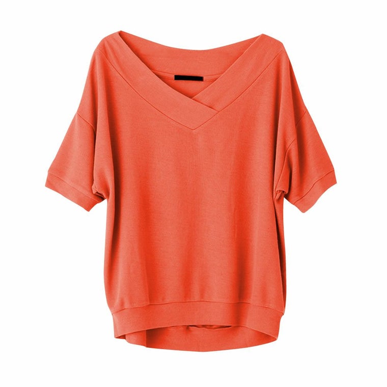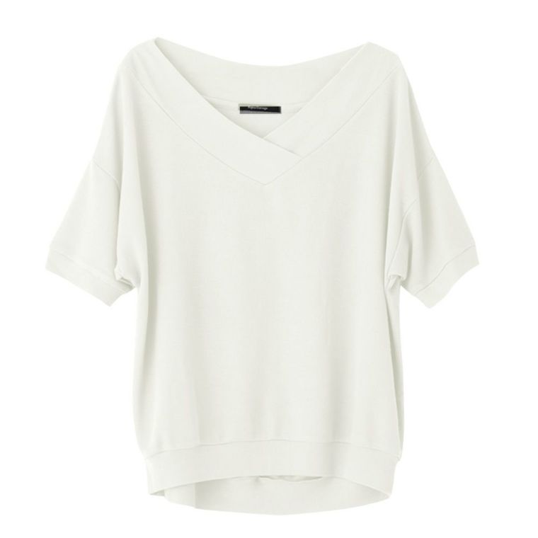 Vネックの空き具合がちょうど良く、いい感じです!去年買ってとても良かったので、色違いでリピしました。まだまだ他の色も欲しいです。