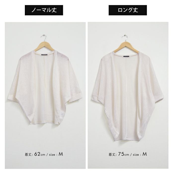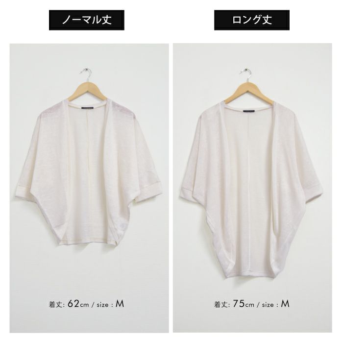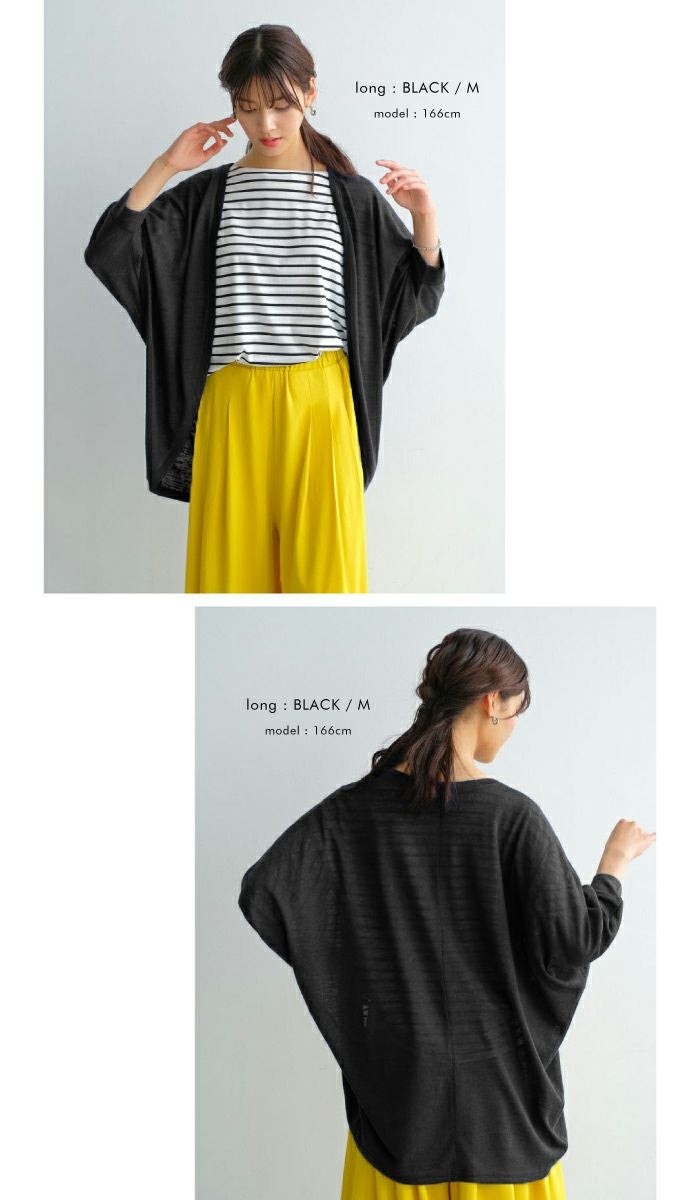薄手の羽織がほしくて購入しました。150㎝ですが、ずるっとした感じで着たかったのでロングにしたのですが、イメージ通りでよかったです。夏場の冷房対策や二の腕隠しに活躍しそうです。