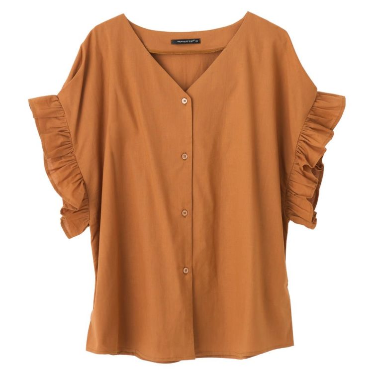 涼しげ素材のラッフルスリーブVネックブラウス ≪ゆうメール便配送10・代引不可≫ | アクアガレージ aquagarage