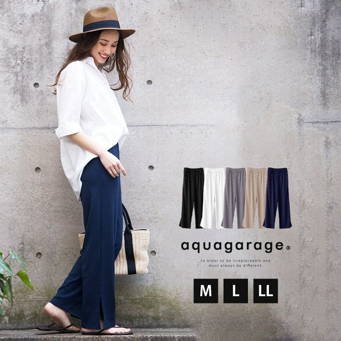 【999円祭り】リブスリットワイドパンツ | アクアガレージ aquagarage