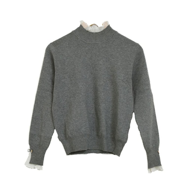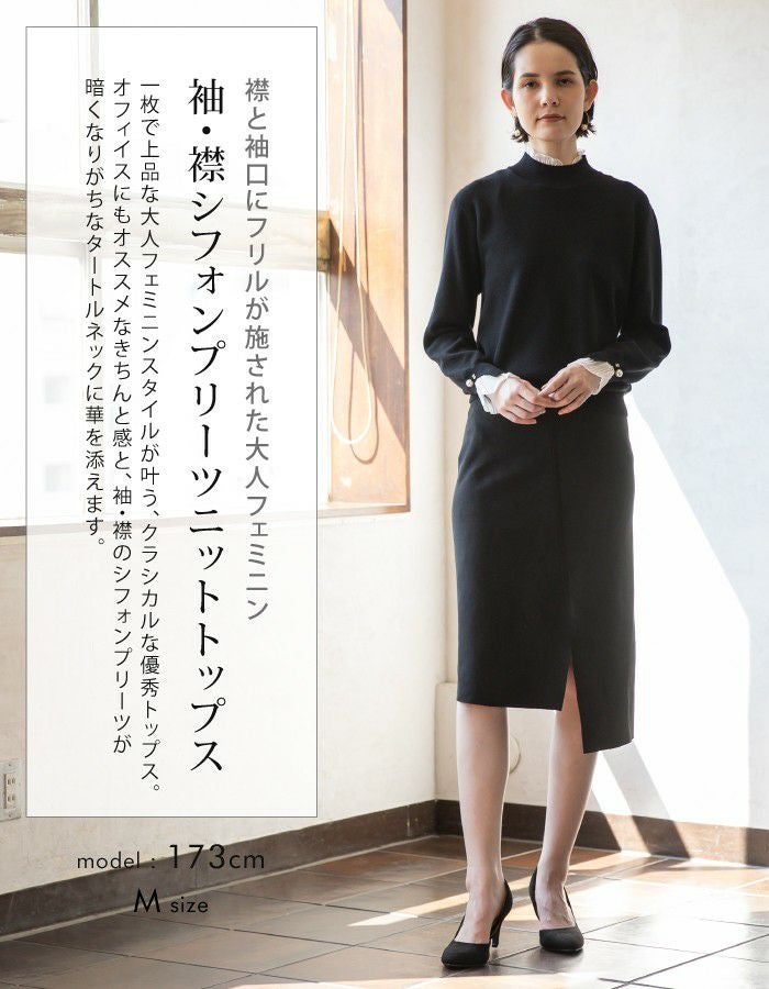 • 襟と袖口にフリルが施された大人フェミニン!袖、襟シフォンプリーツニットトップス。