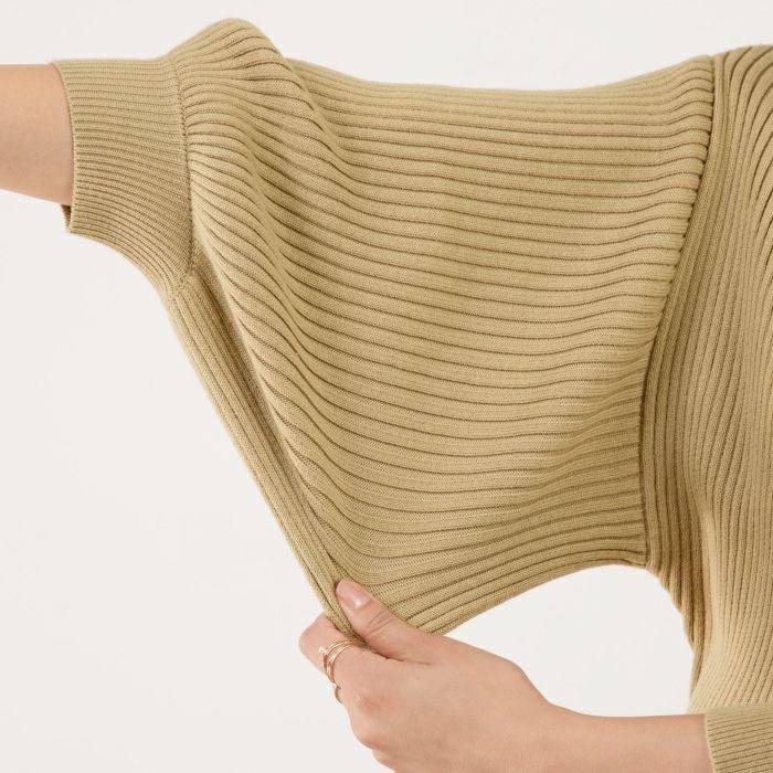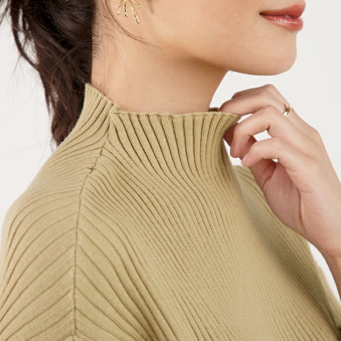 伸縮性抜群のリブ編みで締め付け感もなく体型カバーも◎