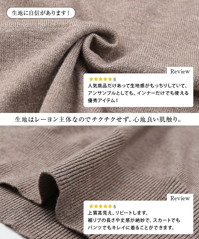 人気商品だけあって生地感がもっちりしていて、アンサンブルとしても、インナーだけでも使える優秀アイテムと思います。スカートやパンツと合わせたいと思います。