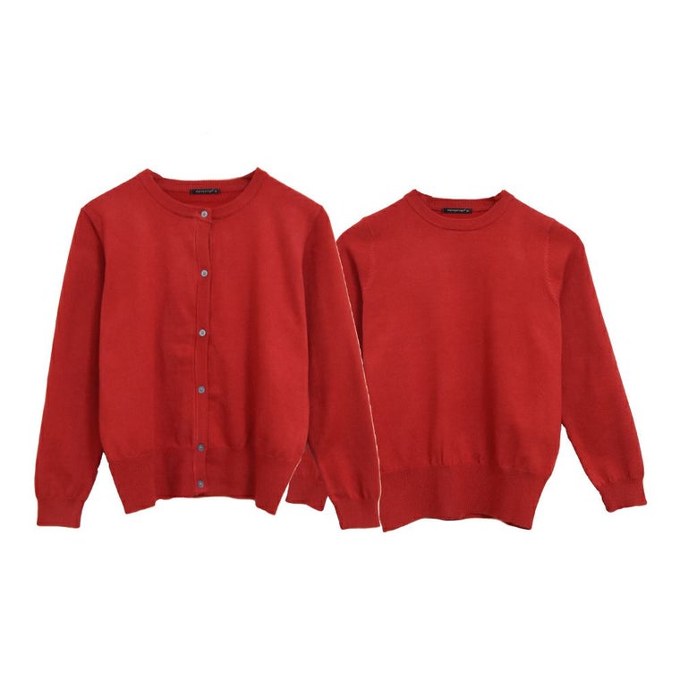 事務員の制服として購入しました。両方共に長袖のアンサンブルがなかなかないので有り難かったです。そしてとても暖かいです。もうワンセット購入しようと思います。