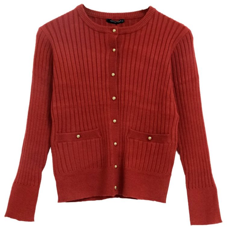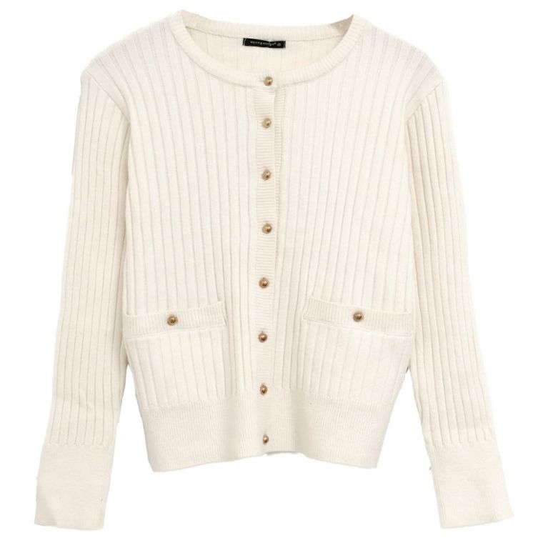 フロントとポケットのゴールドボタンが可愛いニットカーディガン。 リブ編みなので、体のラインもすっきりと綺麗に見せてくれます 。 チクチクしない肌触りと、ストレスを感じさせない伸縮性も◎ 前ボタンの開閉でトップスにもカーデにもアレンジ可能です。