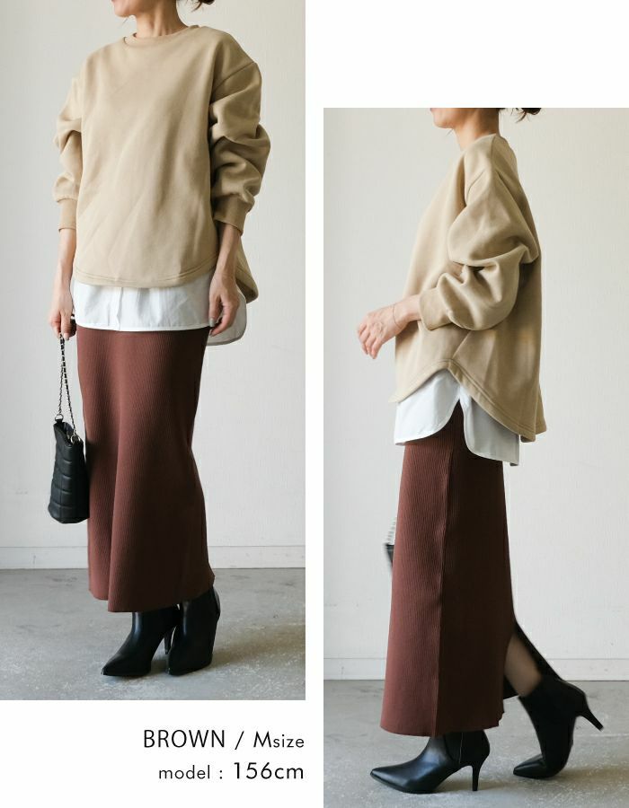 タイトなシルエットが女らしさを強調するナロースカート。 伸縮性抜群のリブニット生地で、ストレスフリーな穿き心地。 寒い季節はレギンスなどを穿いて、オールシーズン使えます。 シンプルなので幅広いコーデに活躍するアイテムです。